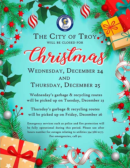 City offices will be closed Wednesday, December 24 & Thursday, December 25, 2025 in observance of Christmas!