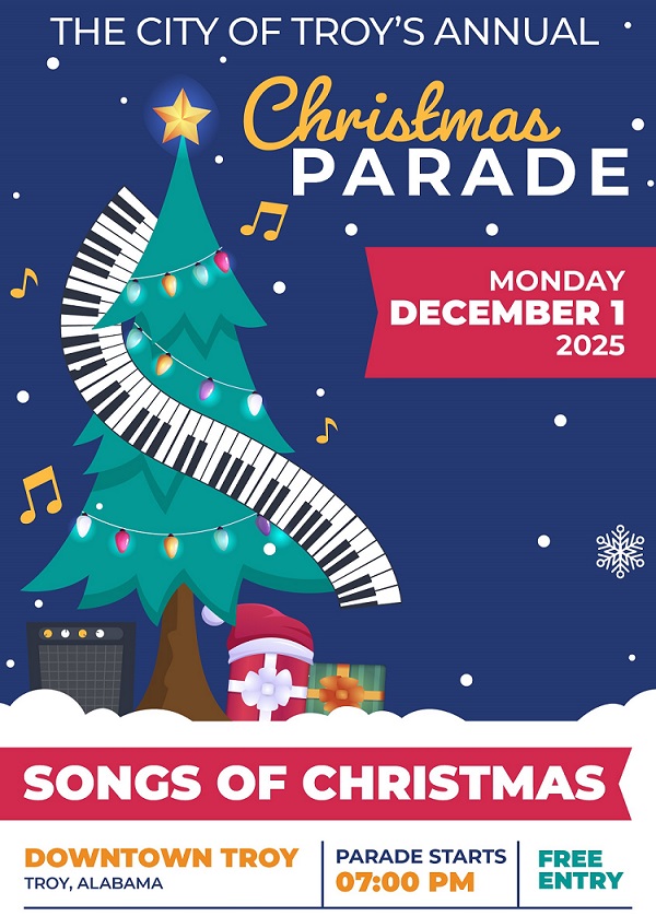 Please join us in Downtown Troy for the City of Troy's Annual Christmas Parade on Monday, December 1, 2025!